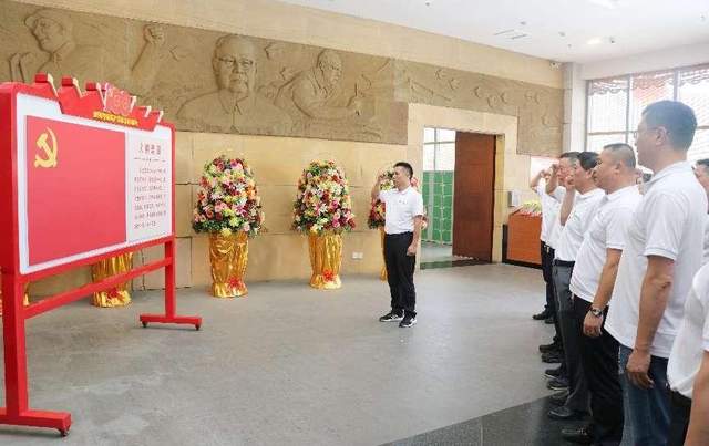 参观学习后,面对鲜红的中国共产党党旗,惠州市社会组织党委委员、总会会长陈俊希带领党员重温入党誓词,以坚定有力的宣誓声,表达不忘初心、牢记使命的信念和决心。