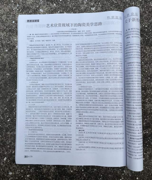 行成于思,业精于勤,艺承于新,李添圣在陶瓷理论研究方面同样取得丰硕成果。2021年5月,李添圣在《科学与财富》杂志发表论文《艺术欣赏视域下的陶瓷美学思路》。