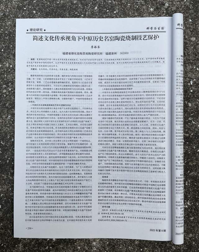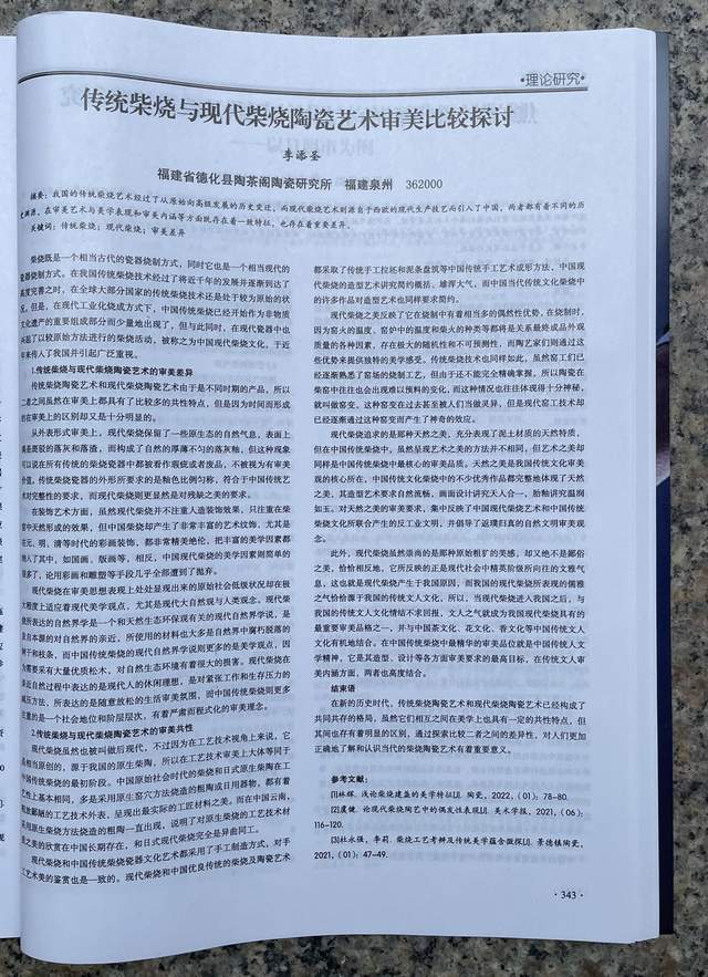 2022年3月,在《科技新时代》杂志发表论文《传统柴烧与现代柴烧陶瓷艺术审美比较探讨》。(记录者:姚逸宁 林良渊 摄影:王明军)