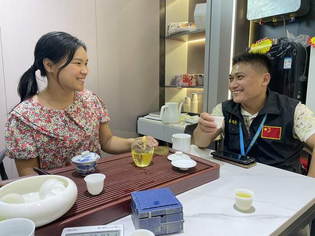 图:连秋兰与中国公益记录者在线德化站主任林良渊在交流