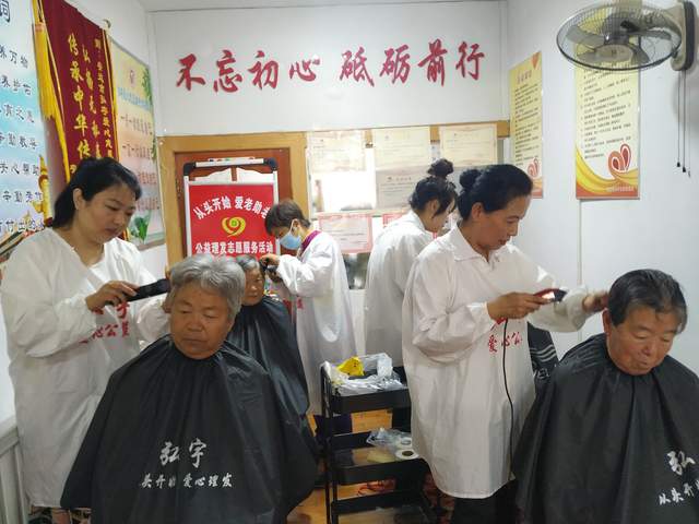 7月28日,弘宇文化家庭和谐促进会志愿者一早来到金税小区服务站,今天为小区老人义务理发19人。