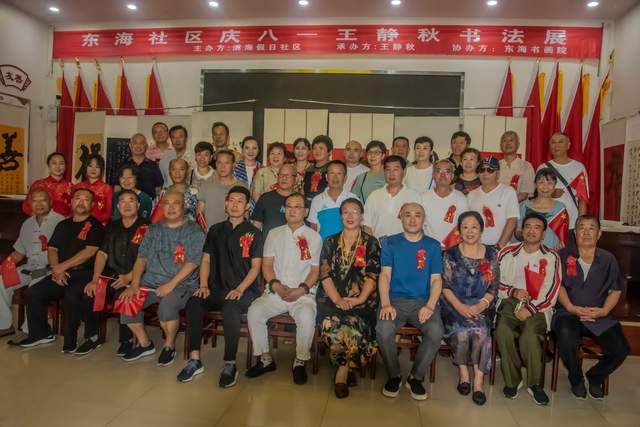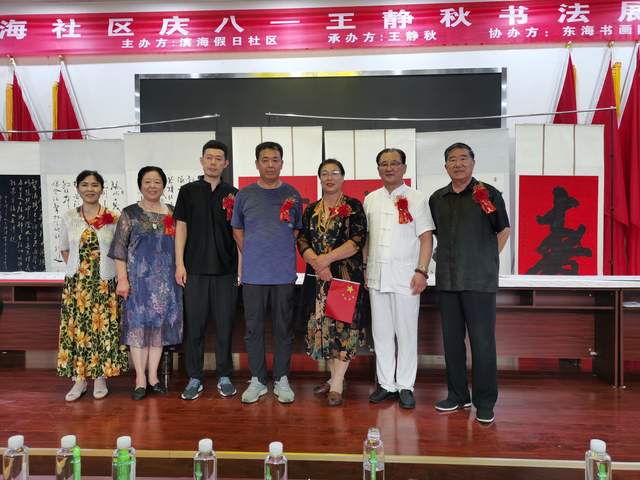 2022年7月31日,庆“八一”唐山籍王静秋书法展在龙口市东海社区二楼会议室开展。龙口市东海街道办事处田树河主任、东海社区书记姚常皓、东海书画院院长张凤玲、王湘江、崔宁和来自全国各地的书画界老师参加了开展仪式,并有幸参观了书展,展出的书法作品受到了大家的好评。