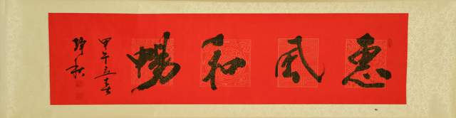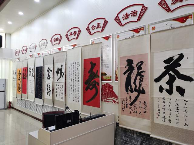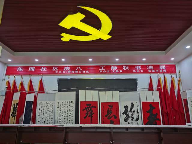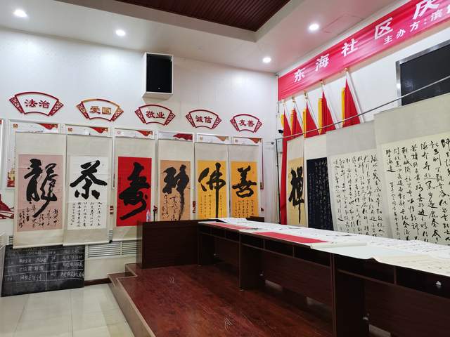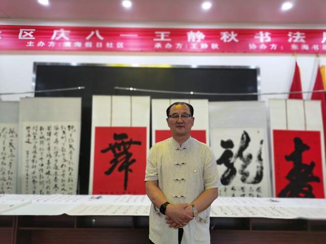 庆“八一”唐山籍王静秋书法展在山东省龙口市东海社区开展