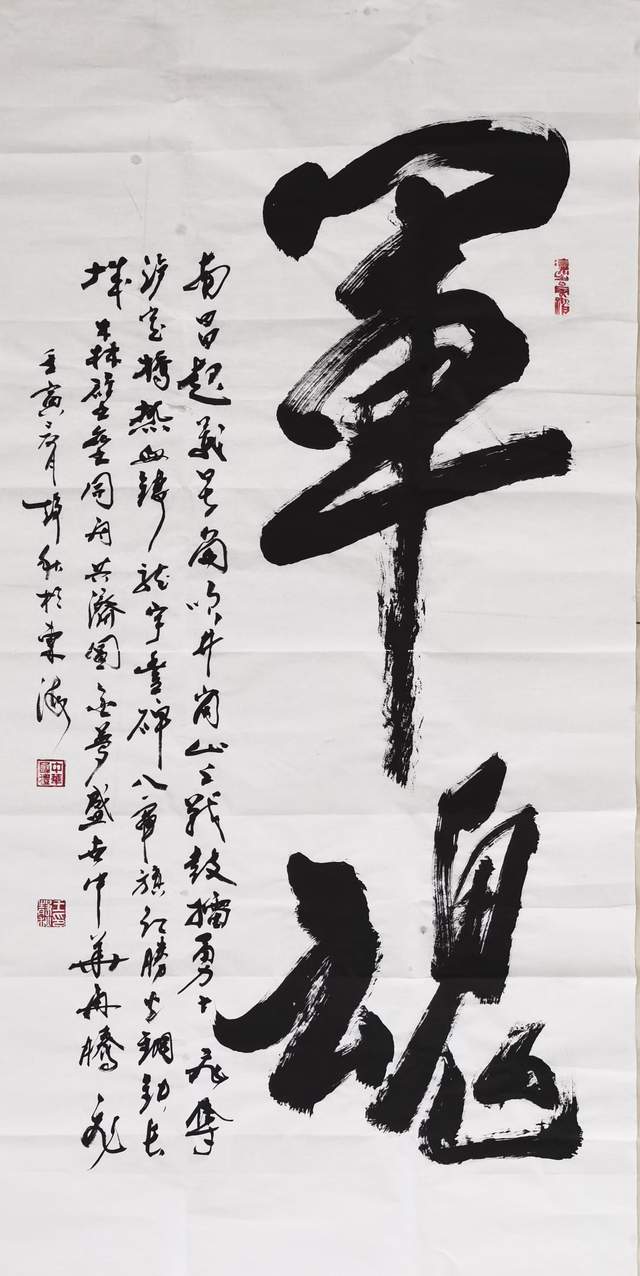 王静秋先生从小就热爱解放军,有一个从军梦,先后把两个儿子送到部队当兵,大儿子当兵五年,复员回家,小儿子大学毕业,当兵两年,考上军校,现任上尉连长,为此,王静秋感到很骄傲!也很光荣!另外,王静秋先生表示,我经历了唐山大地震,当时被埋两个多小时,是解放军救了我,给了我第二次生命,我至今不敢忘记!2019年7月1日,在北京因犯心脏病,又是解放军三O一医院的军医为我做了心脏支架手术,再一次挽救了我的生命。为此,我进行了多年的准备,并创作了多篇歌颂解放军的诗歌和书法作品66幅参展。终于如愿以偿,在八一前夕,搞了这次展览,献给人民解放军!致敬祖国!致敬人民解放军!书法展仪式结束后,各位书法家挥毫泼墨,创作出以歌颂党、歌颂祖国、歌颂人民解放军为主题的书法作品多幅,赠送给了展览主办方,把书法展活动推向了高潮。(记录者:金功 陈建国 陈沛玉)