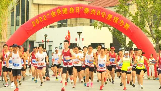 2022“全民健身日”泰兴8公里接力赛在黄桥琴湖广场举行