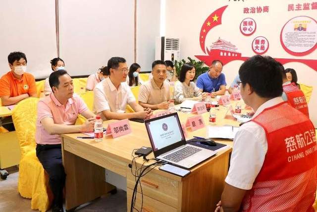 2022年8月17日下午,惠州市社会组织总会“走访5A级社会组织交流活动”(第七站)走进惠州市慈航公益协会。惠州市社会组织总会会长陈俊希,惠州市青少年机器人协会会长王发基,惠州市校园安全教育与管理服务协会执行会长邬尚霖 ,惠州市建筑业协会党委副书记兼常务副会长任宇飞,以及总会会员单位代表、惠州市社会组织创新服务基地入驻机构代表共16人参加交流活动。