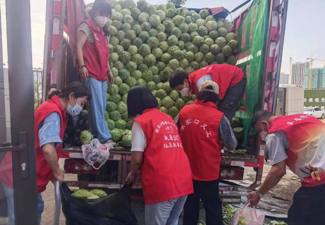张家口市桥东区慈善义工联合会为居民发放蔬菜