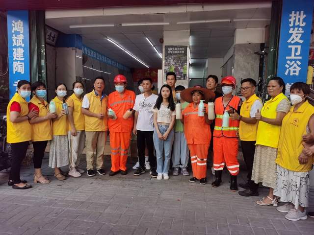2022年8月24日上午,惠州市红棉慈善会联合惠东抖音网友“达叔父子”在惠城区河南岸红棉爱心驿站给基层环卫工人、长者、志愿者等人群送上爱心物资山茶洗发水50支、泌田洗衣液70支、泌田沐浴露50支。