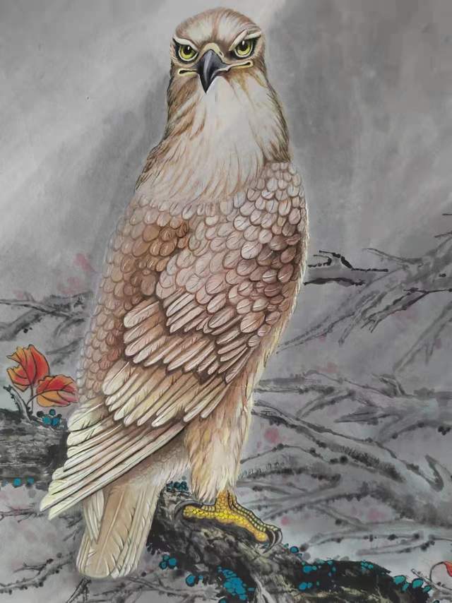在他的水墨画里,有潘天寿、李苦禅等大师的影子,又有当代许多大家的踪迹,同时,还有自己的东西。