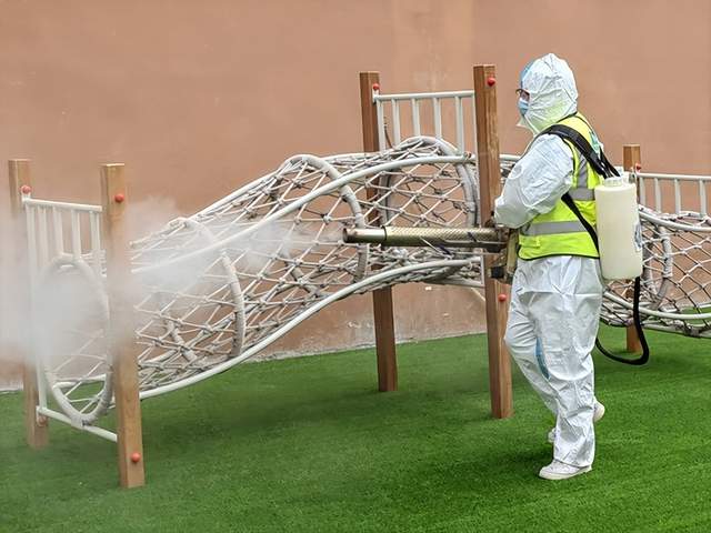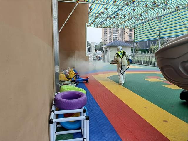 9月初,为给返校师生创造一个健康安全的工作和学习环境,保证开学工作平稳有序地进行,中建一局先锋志愿者在开学前走进山西省康乐幼儿园、彩虹光年幼儿园,为两所幼儿园开展防疫消杀志愿服务活动,消杀面积共计1万多平方米。