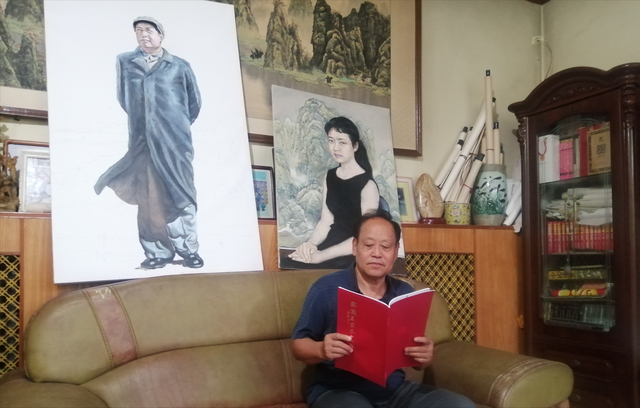 刘立明先生的书房兼工作室,弥漫着一股淡淡的书墨香,满屋是书、是画,地上、墙上,沙发上,几乎把人淹没在书画里,刘立明先生就在这样的环境里研习笔墨丹青。