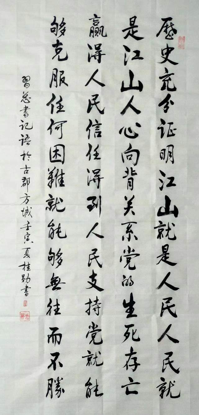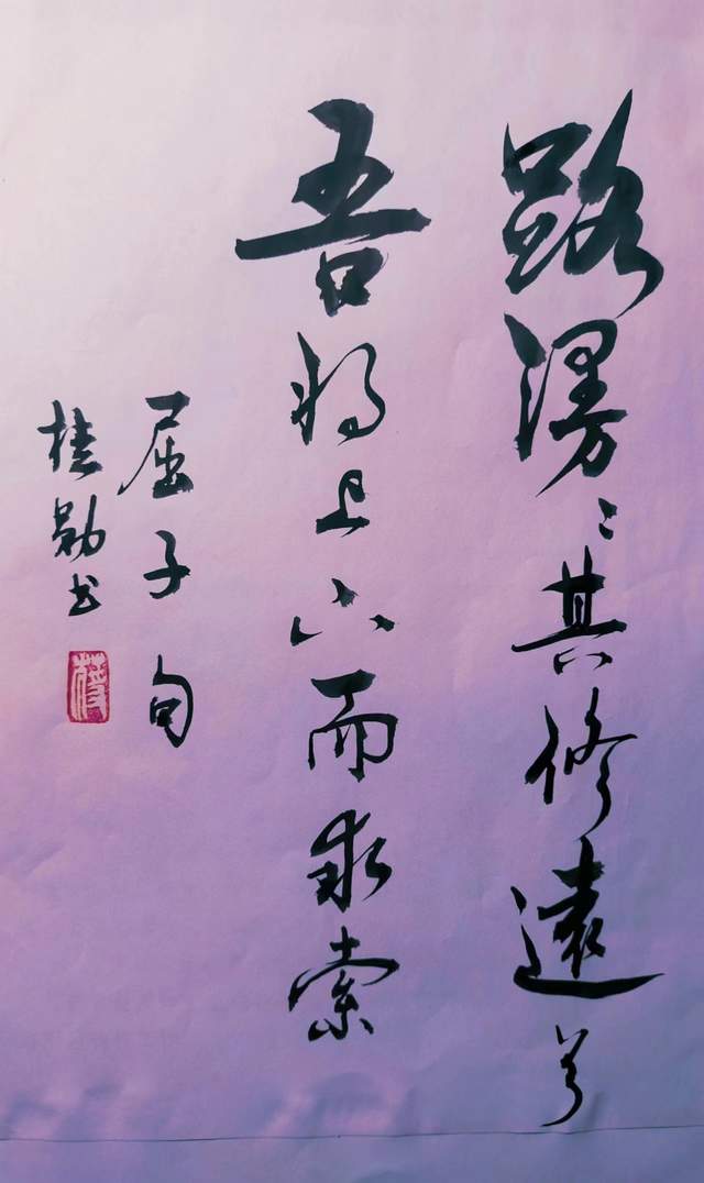 蒋桂勋,男,1945年出生,中共党员,大学文凭,中学一级教师。虽然已步入古稀之年,他仍然保持着年轻时的心态,四十年如一日,笔耕不辍,珍惜着每一分每一秒。在安静的环境中坚持写作,从不因为任何外在原因而停止,钟情于行书。蒋老师的行书沉稳灵动,见功见性,一点一画既不苟且又不飞扬,有一种大趣味,大追求,充满宏大的盛世之风。“每个人必须不断地学习,注入新的活力,人老心不能老,开朗阳光,变得优雅,做一个有内涵、有趣味的人,人生才会有意义、更有价值”蒋老师说。