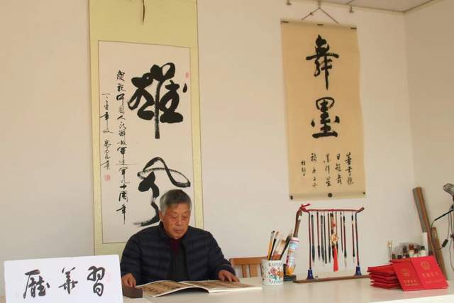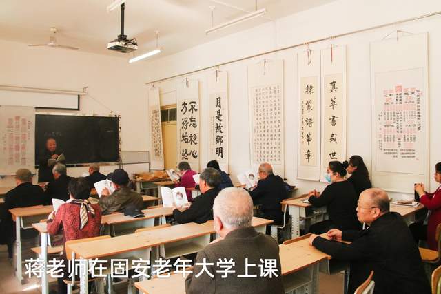 “莫道桑榆晚,为霞尚满天”。蒋老师作为一名老党员,虽然离开工作岗位多年,但始终坚持离岗不离党,退休不褪色,充分发挥党员先锋模范作用,积极发挥余热,传递正能量。连续几年每逢春节来临之际,蒋老师早早把写春联用的大红纸、笔墨准备齐全,为村里的乡亲友邻义务书写春联,红红火火的春联给节日增添了喜庆的气氛,为乡亲们送去了欢乐的祝福。2016年经朋友介绍,参加固安县老年大学书法培训班学习与交流活动,老年大学是知识的海洋,是实现老年人“老有所学,老有所乐、老有所为”的落脚点,不仅可以增加老年人生活的趣味性,更可以陶冶情操,修身养性。通过学习书法,为老年朋友提供了一个相互交流、相互学习的平台,同时也弘扬了书法这项传统文化。2016至2019春节将至,蒋老师应邀参加固安老年大学组织的“笔墨迎春——献爱心、送春联”活动。在寒冷的环境中挥毫泼墨,为居民书写春联,送去新春的祝福,营造欢乐祥和的节日氛围。