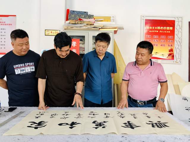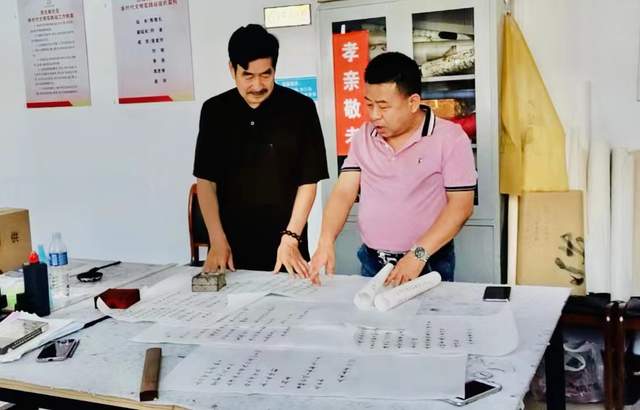 中国公益记录者在线书画家事业发展中心主任张立国一行走进书法家吴连喜先生工作室欣赏学习先生新完成的励志小楷作品十篇。