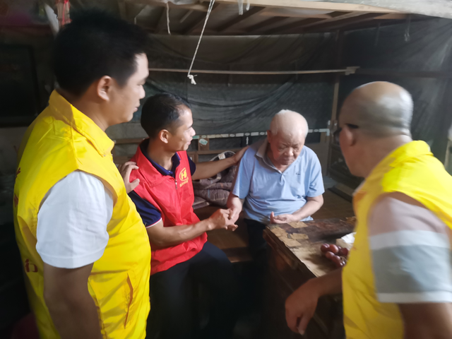 第一户由红棉慈善会小金口新时代服务站副站长张孟祥和爱心企业家黄小军带队,看望瘫痪老党员江明发,江伯87岁,老伴因病去世多年,儿子江朝阳为了照顾父亲,没有找安定的工作,生活比较艰难。