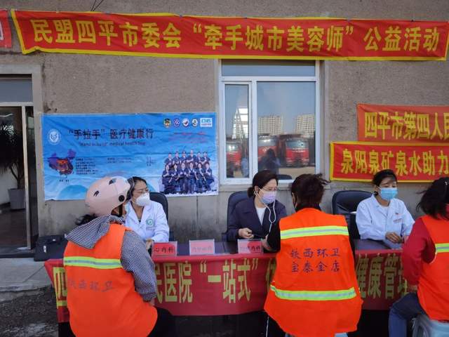 国庆节到来之际,为推动“矢志不渝跟党走、携手奋进新时代”政治交接主题教育走深走实,喜迎中共二十大和民盟十三大的胜利召开。9月27日,民盟四平市委会联合四平市第四人民医院、泉阳泉矿泉水四平经销处共同开展“牵手城市美容师”公益活动,通过义诊服务、捐赠爱心物资等方式,慰问四平市铁西区环卫处的一线环卫工人。