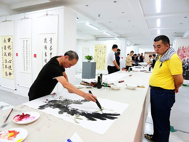 艺术家们精湛的技艺、娴熟的手法,饱满的创作激情在笔会现场表现得淋漓尽致,经过一个多小时的精心创作,一百多幅寓意深远、意境高雅的书画作品便呈现在大家面前,令人赞不绝口。