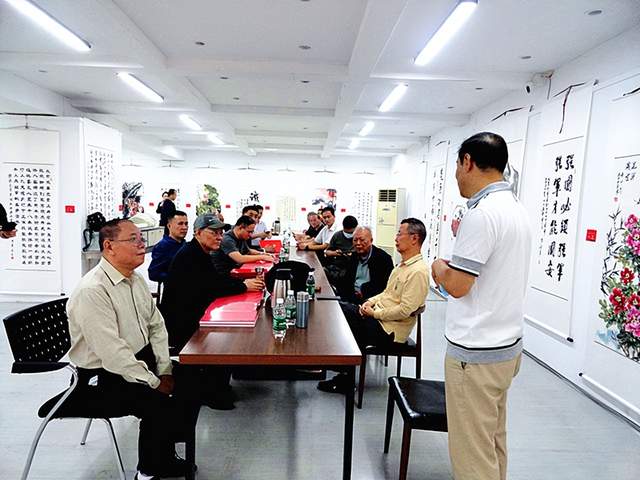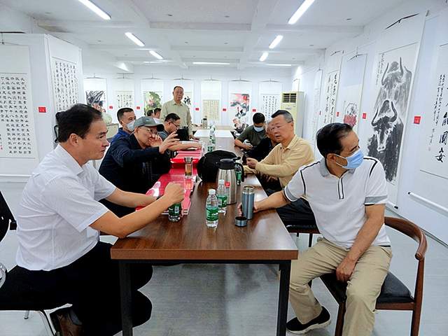 笔会开始前,本次书画展活动组委会先对本次书画展活动进行了一个简短的小结。据悉,本次书画展览自8月24日开始,一直持续到9月28日,展览时间为5天。因疫情防控需要,展览期间严格坚持执行“限量、预约、错峰”前提下,进入馆内的所有嘉宾一律全程佩戴口罩,测量体温,扫场所码,出示健康码、行程码和48小时核酸阴性证明,有序观展。