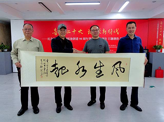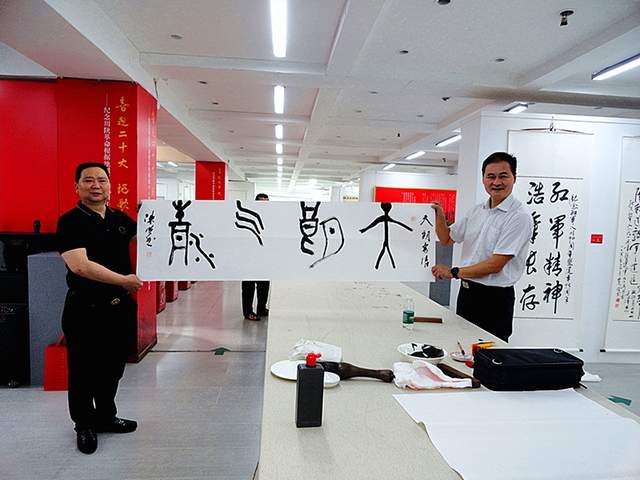 在一派祥和的气氛中,大家泼墨联欢,展卷挥毫,或画或写,一笔一顿,以书言志、以画寄情,用不同的表现手法和艺术风格,书写英烈、先贤和古今名人志士对梦想的追求与寄语,以饱含深情的笔触表达对党和祖国无限忠诚的赤子之情与美好祝愿。丹青绘就人间真善美,妙笔书写时代新风尚。