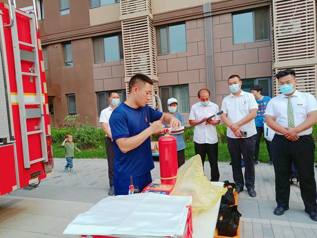 他们来到西北旺镇永靓家园进行实战演练,此时永靓家园主抓秩序的经理唐金玉抓住这一大好时机,在保安队长刘新泽的带领下组织保安队员认真配合,正好在国庆前夕以及党的二十大即将在北京召开,为了提高队员的消防知识和技能本领确保园区消防安全,培训过程中队员们认真听取教官的每一个消防常识,同时参加现场操作。