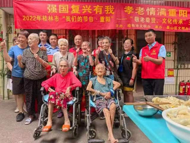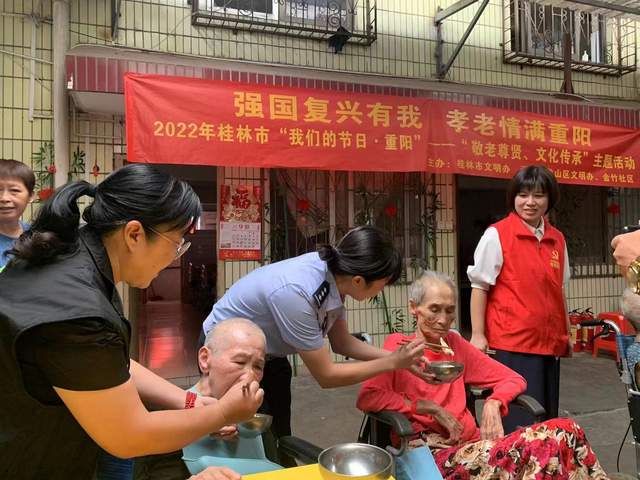 在“九九重阳节”传统节日到来之际,9月29日,桂林站派出所民警联合中国公益记录在线象山区工作站志愿者、金竹社区工作人员,来到夕阳居老年公寓,开展了一场以“强国复兴有我,孝老情满重阳”为主题的敬老活动。