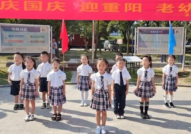 10月1日国庆节,机关溪林园区大班孩子与社区老人一同开展“庆国庆迎重阳 老幼同乐”主题活动。