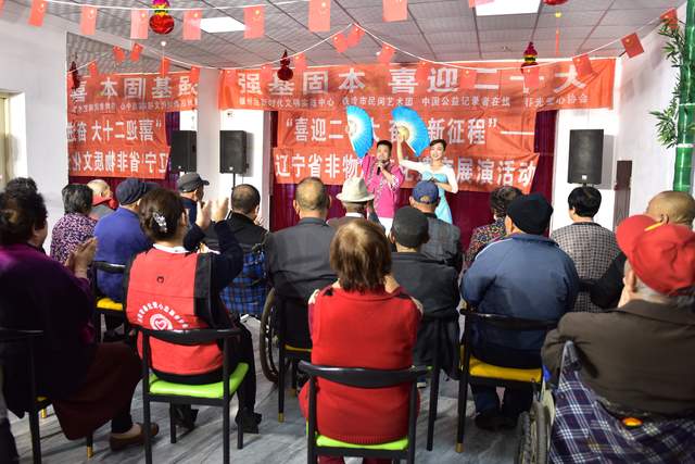 活动现场铁岭市民间艺术团组织优秀演员,派出强大的演出阵容,为老人举办了一场丰富多彩的演出,《包公断后》《回杯记》《再回门》和歌曲等节目,丰富了老人们的精神文化生活,增添了节日的欢乐气氛。老人们吃着水果,看着文艺节目,脸上洋溢着幸福的笑容。