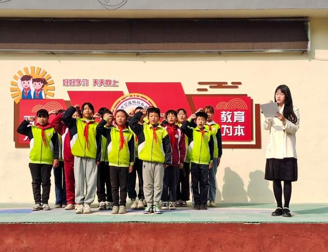 建队日当天,大队辅导员发表了热情洋溢的讲话,给同学们普及了少先队的知识,鼓励同学们树立远大理想,在学习中增长知识,用自己的实际行动,早日成为一名优秀的少先队员,为队旗争得荣誉,为国旗增添光彩。随后在辅导员的带领下大队委员们在国旗台前庄严宣誓,声声誓言,坚定有力,充满信念,勉励他们成为全体队员的榜样,全心全意为队员服务。
