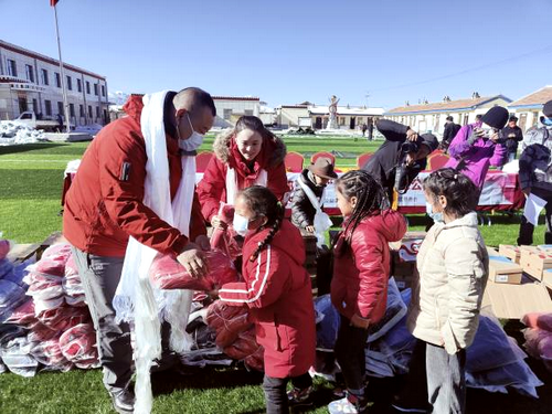 12月09日上午,北京公益服务发展促进会副会长王冠寓联合“我爱你”公益团体的爱心企业家、玉树州热哇慈善会的领导一同抵达位于青海省玉树州的上巴塘附属小学。