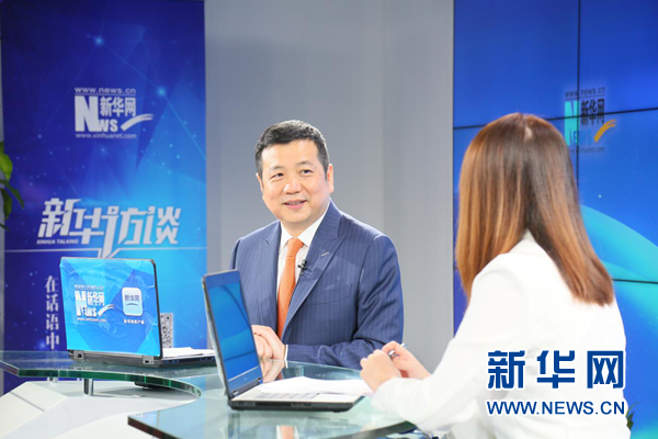 李锦记健康产品集团高级副总裁、无限极全球行政总裁俞江林做客新华访谈。(新华网 任禹西 摄)
