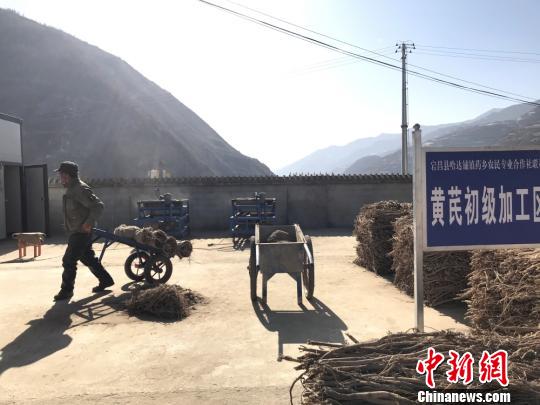 2019年1月29日,甘肃陇南市宕昌县哈达铺中药材加工厂内,当地农民加工药材。图为黄芪初级加工区。(资料图) 闫娇 摄