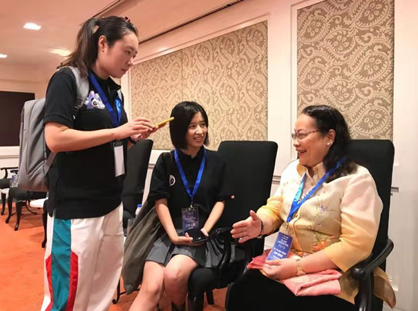 菲律宾前卫生部部长宝琳·巫比亚(Paul Ubial)在VIP厅接受环球网记者采访。